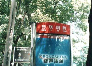 バスで通った時に西四あたりに電気店が集合していたのを見たのと、西四には胡同がかなりきれいに残っているということなので西四まで歩くことにしました。2kmというところですからそれほど遠くはないのですが、なにしろ足腰がガクガクなので、まるで老人の散歩のようにバス停で休み休み歩きます。