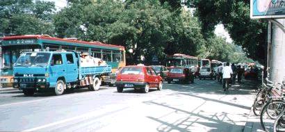 西四あたりで胡同を歩きましたが、本気で足腰が痛くなってきたので、残念ながら心ゆくまで見ることはできません。普通のバスは1元なのですが、冷房バスは2元なのですいています。これに乗って西単に帰ることにしましたが、大渋滞で気持ちよくうたたねして覚めたらまだ1ブロック動いていませんでした。