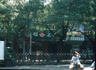 瑠璃廠というのは紫禁城の瓦を焼くために作られた街で、その後一大骨董品センターになりました。わざと古い街並みを残してあってちょっと倉敷のような雰囲気です。東街と西街を合わせると800mくらいの長さですから、香港の廟街より長いことになります。実際、北京はなんでも大きくて体がまいってしまいます。タクシーを降りたとたんにしつこい客引きに逢います。なんとか振り切って、銘茶店を見つけて入りました。この天福銘茶はかなり大きなチェーン展開で、私が王府井で入ったのもこの支店でした。とにかく時間がないので女性物の蓋盃(例の蓋をずらせて飲むための湯呑茶碗)と台湾阿里山の烏龍茶で計156元は一番高価な土産になりました。