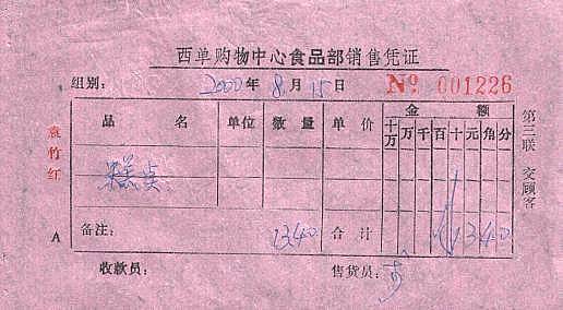 完全に止まっているさきほどの西単購物中心で小月餅と各種菓子をばらばらに詰めて包装してもらいました。こちらではよそ行きに包装するということが少ないのでせいぜい箱に入れてくれるくらいですが、それでも2元とります。全部で50個くらいの菓子を詰めて30元程度でした。