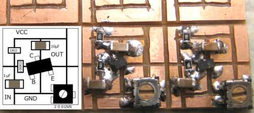TRと4個のチップと電解コンデンサ、100Ωチップ半固定VRです。